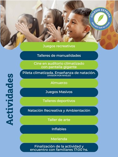 La Escuela brinda el espacio para que los alumnos, tanto de Jardín como de Escuela Primaria, disfruten de unas hermosas vacaciones, acompañados de docentes especializados, en un clima de camaradería, contención y seguridad.